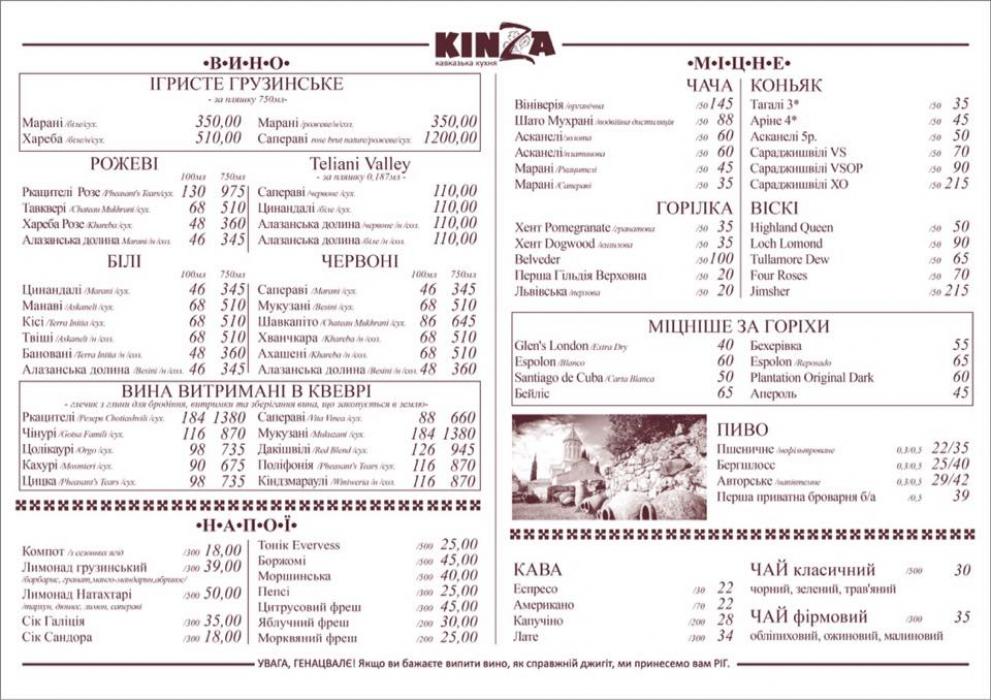 Цены: Ресторан "Kinza" ( "Кинза")