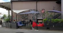 4. Дизайн «+». Кафе тільки відкрилося, ремонт свіжий, дизайн сучасний. Єдиний недолік це смітник від ТЦ «Вопак» на задньому дворі. Але адміністрація кафе вжила заходів з благоустрою території.