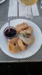 Жах!!!Не рекомендую наближатись до цього закладу!!!Можливо екстер‘єр і норм, але кухня і обслуговування нуль!Відпочивали з друзями і замовили страву “Курка карі»: помідори-чері були необроблені, в шматку філе знайшлась величезна кістка,а що саме неприємне - довжелезна волосина,яка була просто обмотана на шматочку курячого філе!!!Нащо офіціат повідомила,не вибачившись, що просто не внесуть цю страву в рахунок! Не запропонувала навіть щось інше! Отак і залишились голодними(((